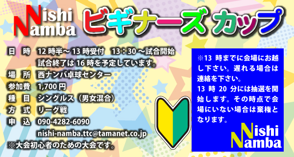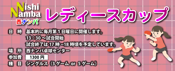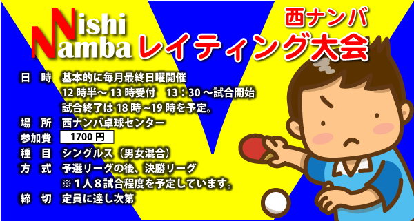 西ナンバ卓球センターでは、日曜日に各種大会を開催しております。