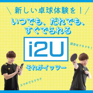 史上初の卓球大会参加アプリ「i2u」を採用した大会です。アプリ内で対戦相手が決まり、コートまで知らせてくれます。点数入力もアプリ内で行い、自分の成績に応じたレイティングポイントが付与されます。i2Uは卓球の試合に簡単に申し込めて、すぐに参加できます。大会進行は驚くほどスピーディーで衝撃的。アプリ内で卓球仲間と繋がってコミュニティが広がります。新しい卓球i2Uで思いっきり楽しみましょう!